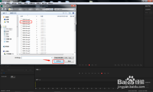 在弹出的导入文件窗口中,选择需要的音频素材文件,然后点击打开。