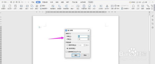 插入“9列;10行”表格,点击“确定”