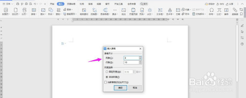 插入“8列;10行”表格,点击“确定”