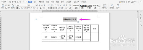 在表格上面输入“方针当作果评定表”字体加粗、居中、调大,这样表格就建造完当作了