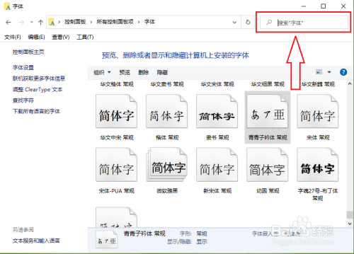 在右上角的搜索框中输入字体名称,例如“青青子衿体”,回车键。