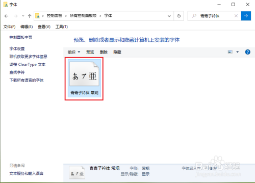 选中“青青子衿体”,然后按键盘上的“ctrl+c”组合键复制字体。