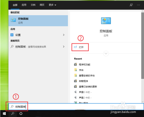 点击电脑左下角的搜索框,输入“节制面板”,然后点击【打开】。