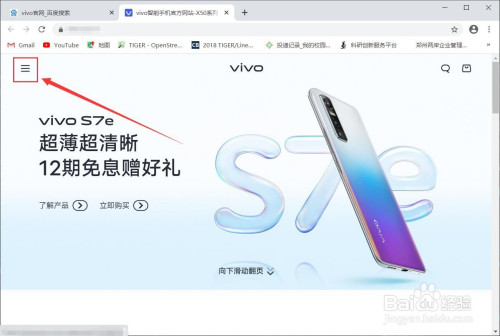 在vivo官网中点击左上角的三条横线按钮。