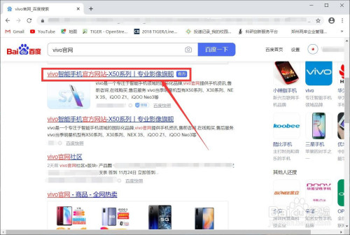 打开浏览器,搜刮“vivo官网”,点击官方网站进入。