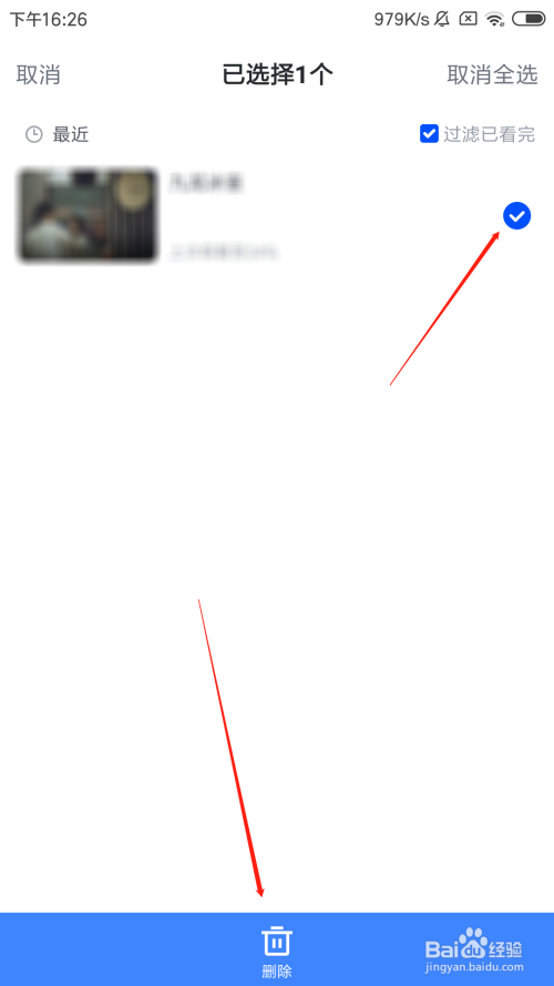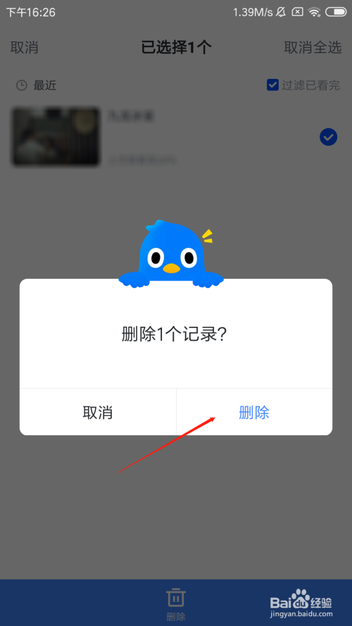 选摘要删除的播放记实,然后点击下方的删除按钮。