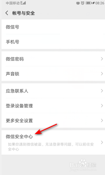 之后点击微信平安中间。