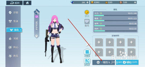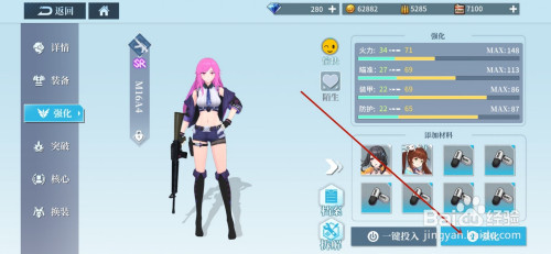 三.进入界面之后,然后选择一位我们需要进行强化的脚色,直接点击她即可进入相关界面。