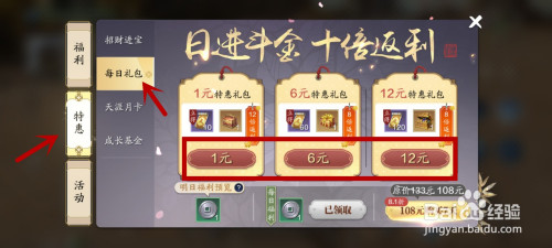 然后在【特惠】里的【每日礼包】,选择性采办特惠礼包。