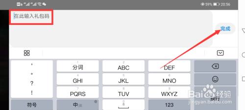 输入礼包码后点击右侧的完当作。