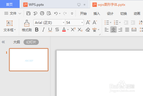 1.打开演示文稿内容,然后,选中字体后,点击“文本东西”选项卡。
