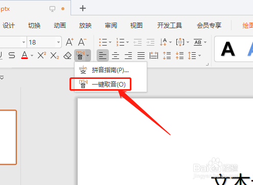 2.鄙人侧功能区“拼音指南”中,点击“一键取音”即可。