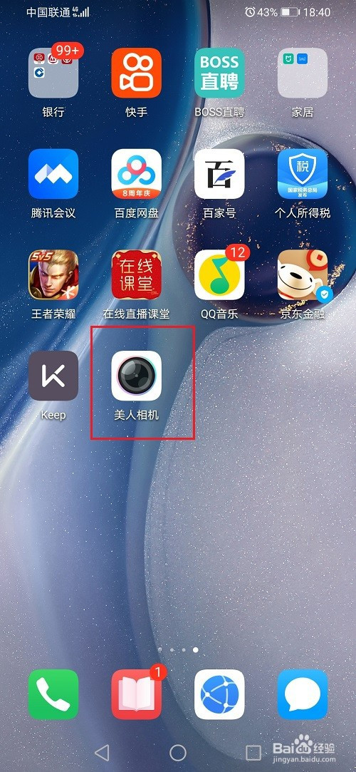 第一步打开手机,点击桌面的佳丽相机