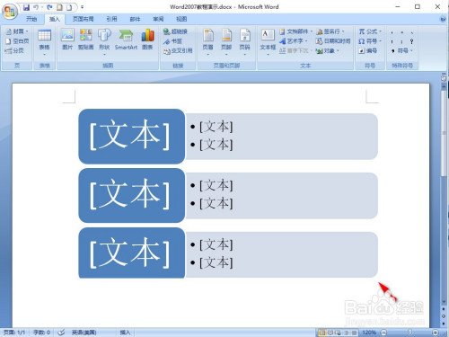 功能区转换新界面后,点击号令【SmartArt】。