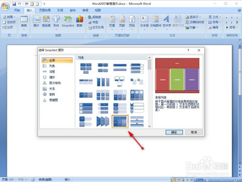 弹出选择栏中,依次点击【表格列表】小图标、【确定】。