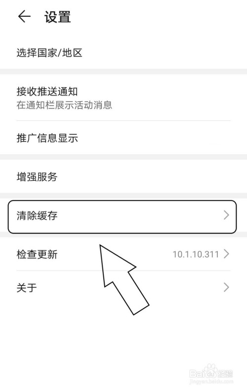 3.在设置的功能栏中点击清理缓存。