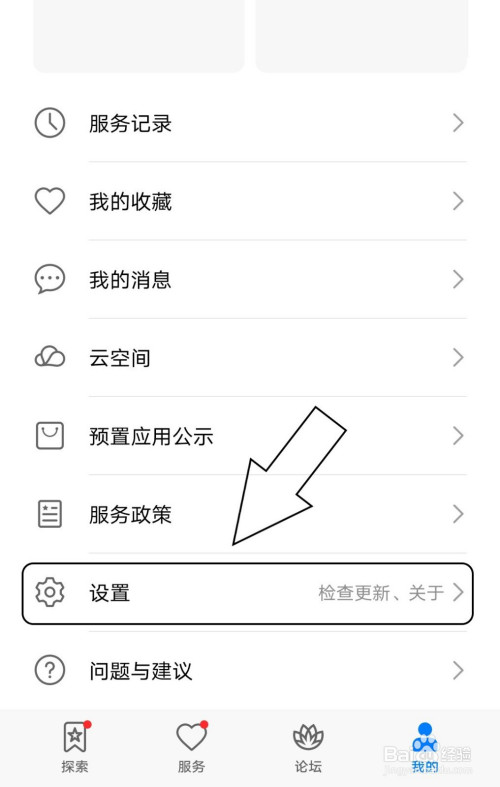2.页面下拉,找到设置。