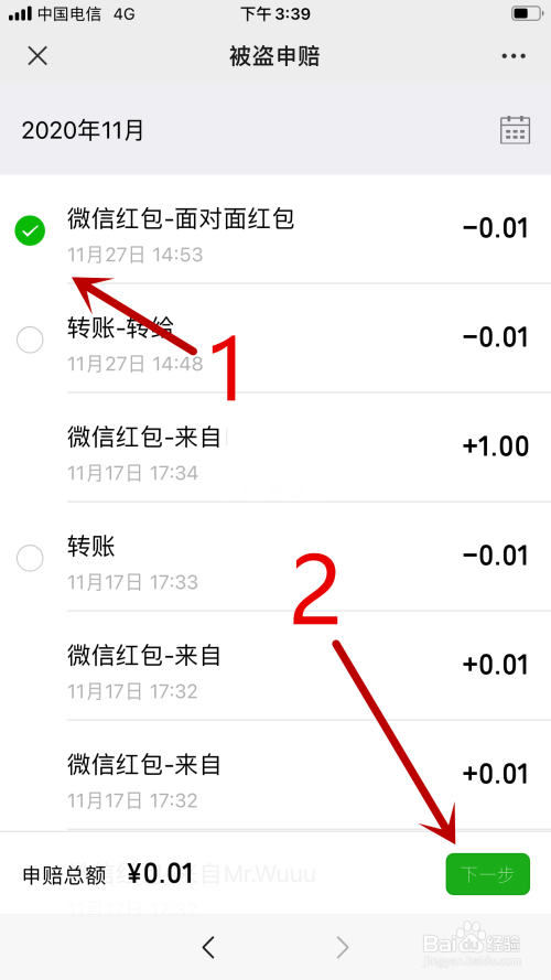 跳转新页面后,点击选择被盗记实,点击【下一步】。