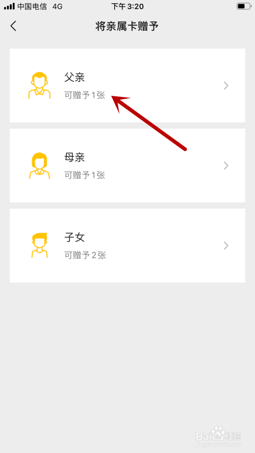 跳转新页面后,点击【赠予亲属卡】。