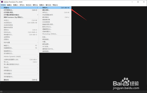 首先,我们打开pr,点击:文件 ——>新建 ——>项目