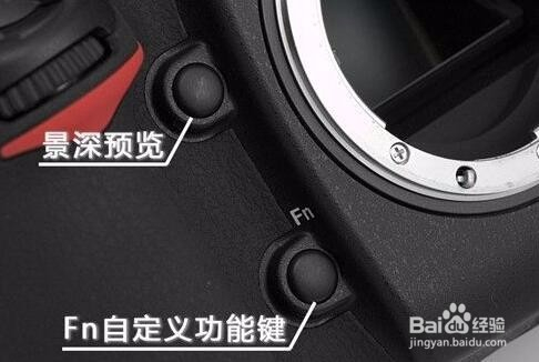 在镜头卡口左边上下别离有2个按键,它们别分为:景深预览按键、Fn自界说功能按键。
