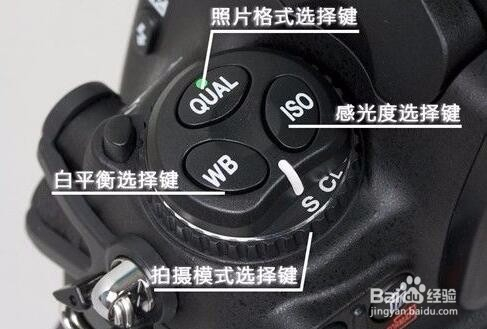 在机身的左肩部门是一些常用按键,别离为照片格局(质量)选择键、白均衡选择键、拍摄功能选择键、ISO感光度选择键。