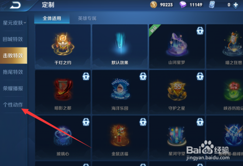 接着,在页面左侧点击个性动作。