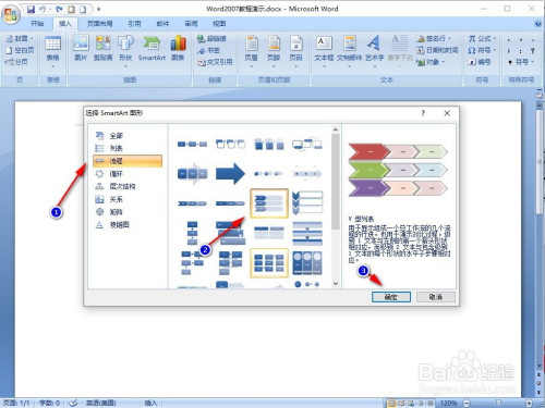 弹出选择栏中,依次点击【流程】、【V型列表】图标、【确定】。