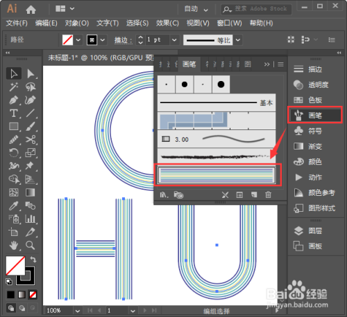 我们把所有的路径选中,在画笔中点击线条即可,如图所示。