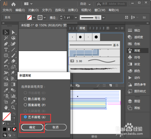 我们把线条新建为【艺术画笔】,点击【确定】,如图所示。