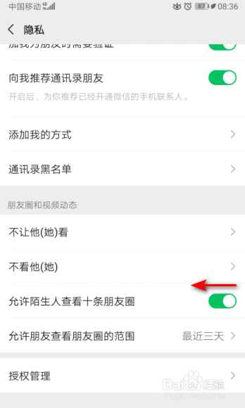 成果如图所示,这样便封闭了许可目生人查看十条朋友圈。