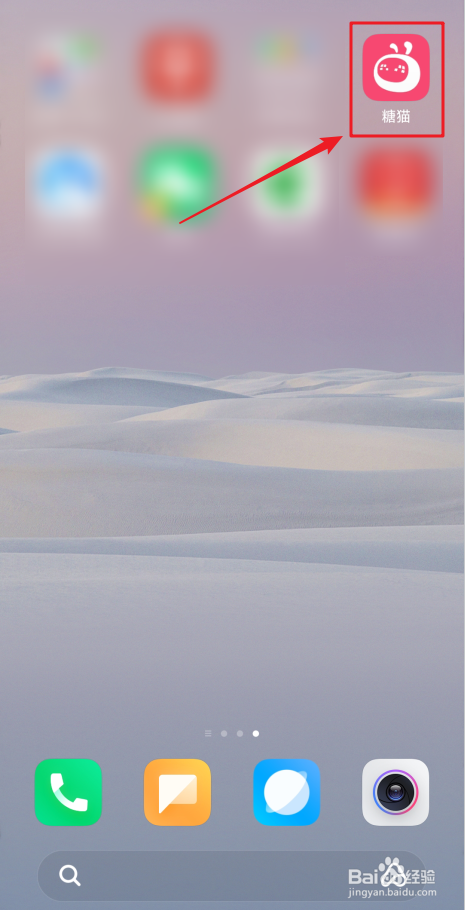 在手机上找到“糖猫”图标并点击它。见下图