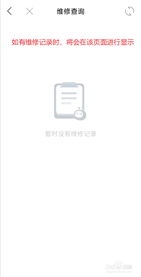 - 没有维修过,将会显示临时没有维修记实。有维修时,将会显示出维修记实。