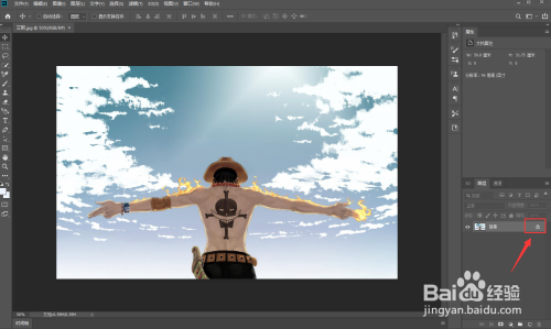 打开图片后,点击右下方图层——锁定标记(解锁图层);