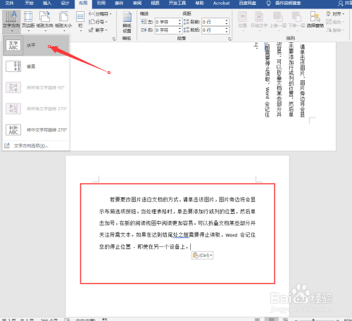 打开word文档,可以看到默认的文字偏向为程度即横排;