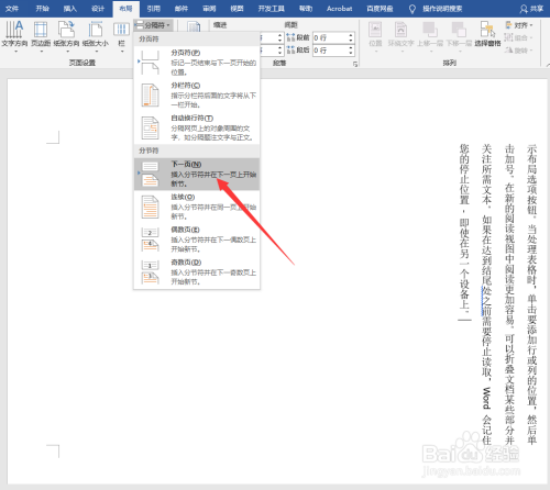 需要同时插入横排跟竖排文字时,在文字结尾点击结构—分隔符——分节符——下一页,插入新节;