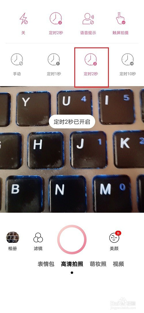 第五步点击之后,设置按时摄影的时候,这里选择2秒,按照需要设置