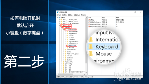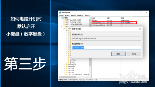 打开它后双击打开”InitialKeyboardIndicators“ ;在这里可以设置键盘。默认数值是”2147483648 ”。