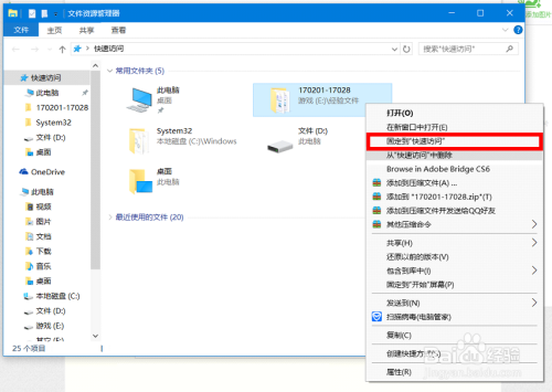 首先按 “win+E”打开“快速拜候”。单击鼠标右键您要添加到快速拜候的文件夹然后选择