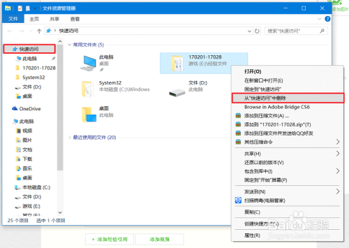 选择您要删除的文件夹然后单击鼠标右键,选择“从快速拜候中删除”