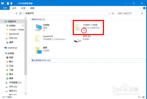 添加完后 按 “win+E”打开快速拜候 您能看到 您适才添加的文件夹 固定到快速拜候了 下面有“固定”图标。