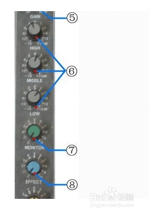 高音:2 KHz ~ 8 KHz 是影响声音条理感的频率。不足时声音的穿透力下降,过强时会遮掩说话音节的识别,使齿音加重、音色发毛。 7.MONITOR:总监听音量旋钮