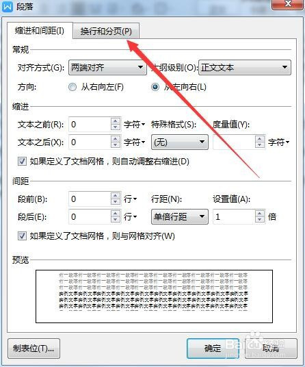 这时就会打开段落窗口,点击换行和分页选项卡。