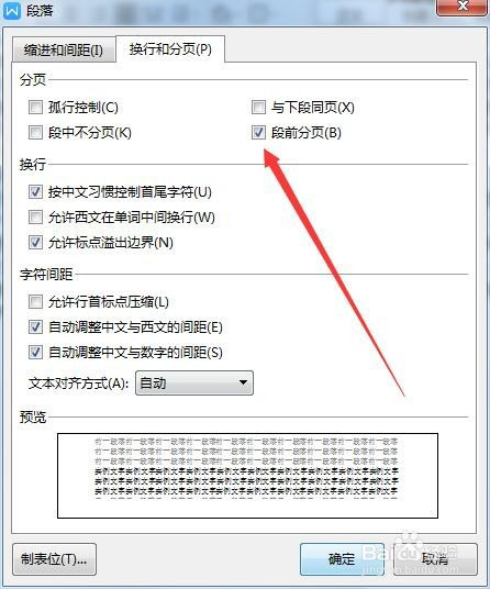 接下来在打开的页面找到段前分页设置项。