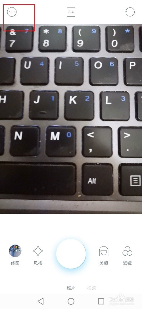 第二步进去水柚相机摄影界面之后,点击三点图标