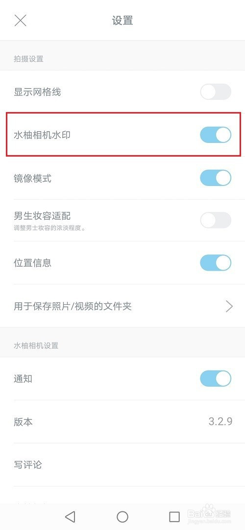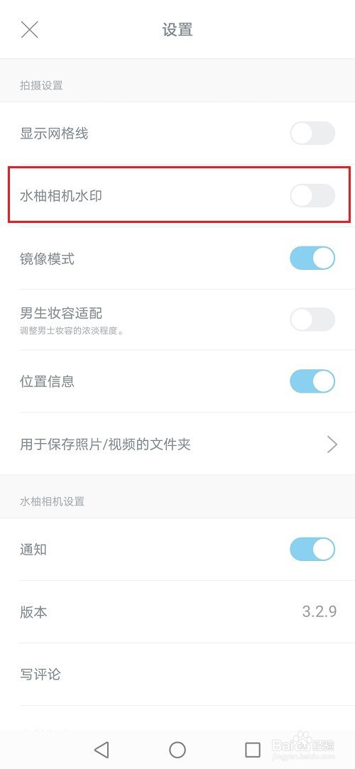 第四步进去设置之后,点击封闭水柚相机水印