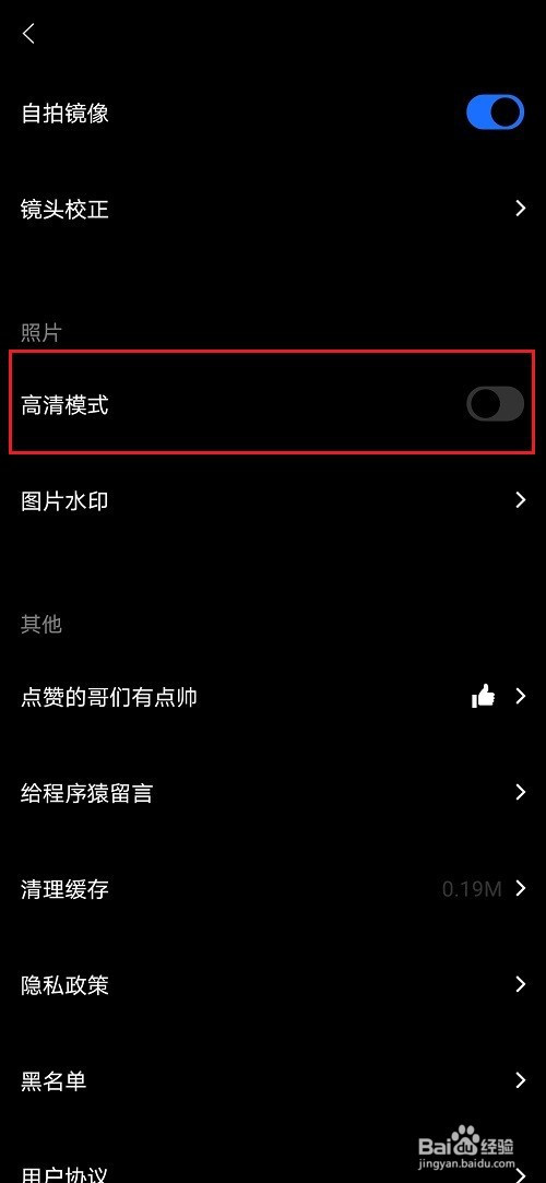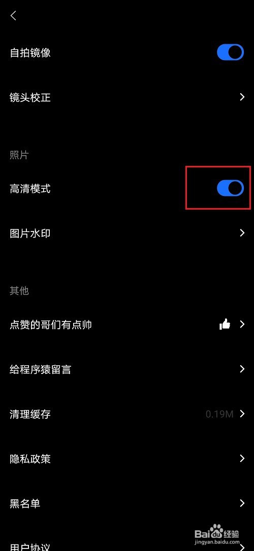 第四步进去型男相机通用设置之后,点击开启高清模式