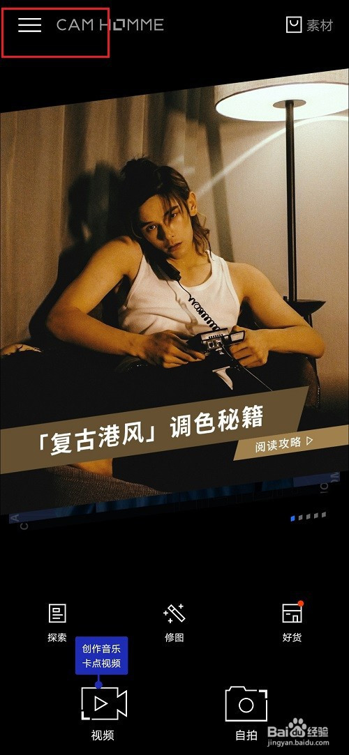 第二步进去型男相机之后,点击左上方的列表图标