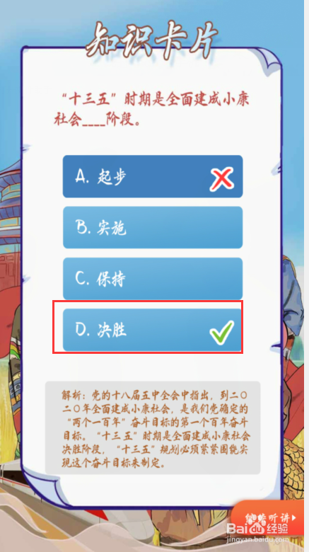 点击下一题,最后选【D】完当作进修即可。