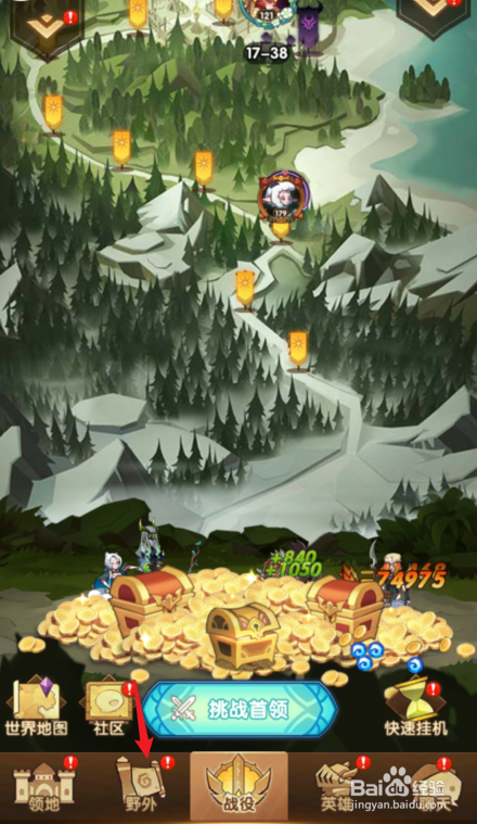 打开剑与远征游戏后,点击下方的野外选项。